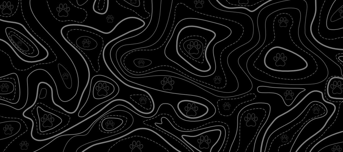 Pawprint Terrain Mouse Pad – XL 90cm Black Contour Map Desk Mat for Pet Lovers & Minimalist Setups