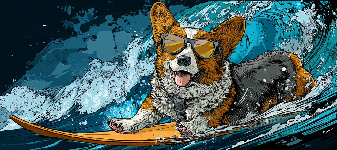 Surf’s Up Corgi Mouse Pad – 80cm Beach Vibes Desk Mat for Gamers, Pet Lovers & Summer Setups