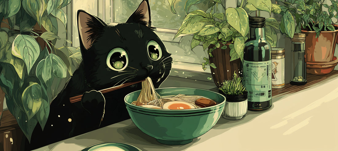 Neko Noodle Time Mouse Pad – 80cm Lo-Fi Ramen Desk Mat for Foodies & Cat Lovers
