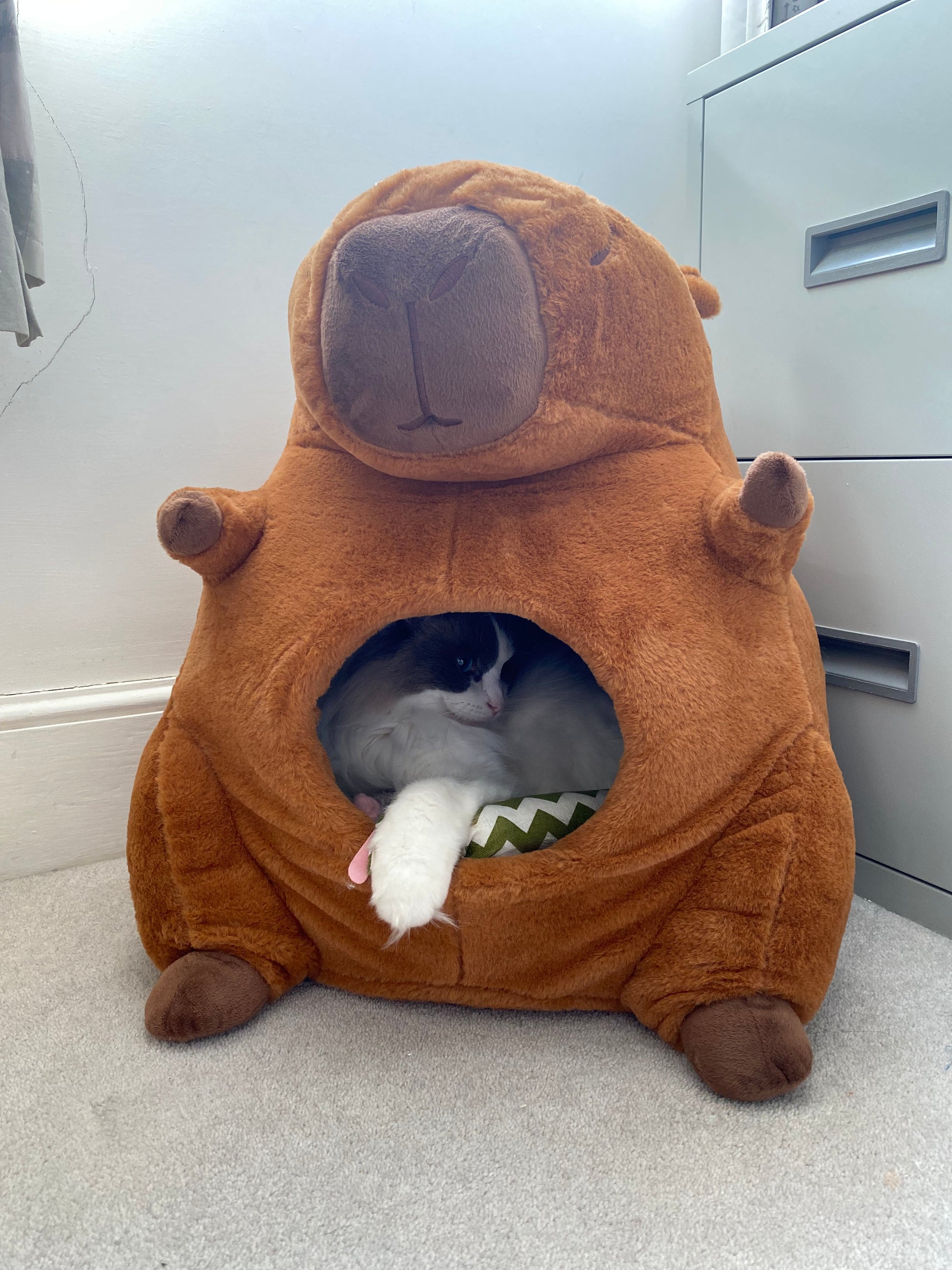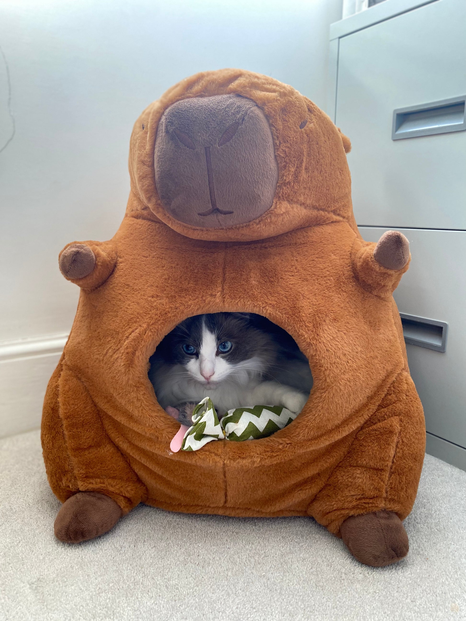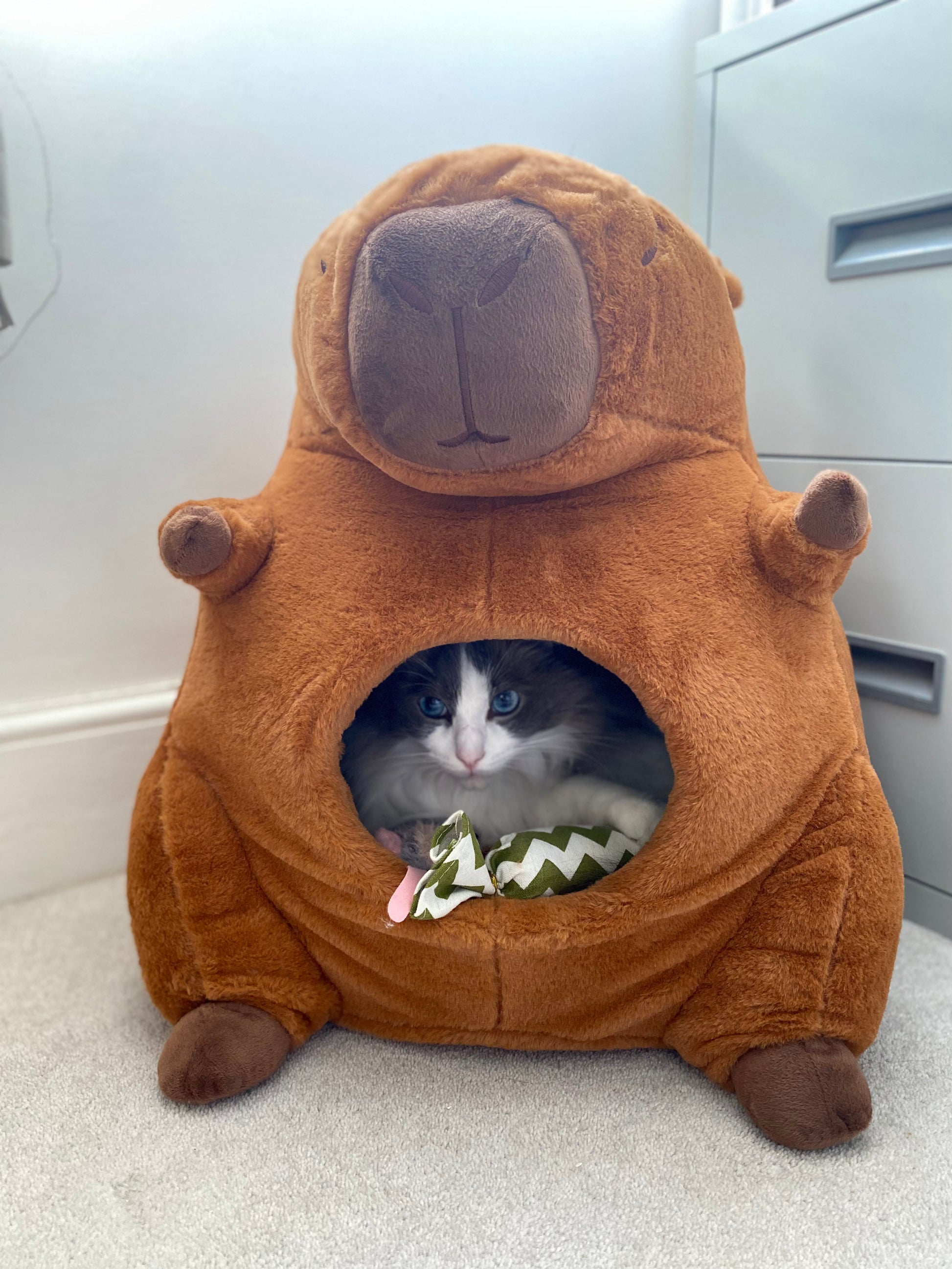 Perfect for nap time, playtime, and TikTok-worthy moments – this is more than a cat house. It's a capybara-shaped hug your cat can climb into.