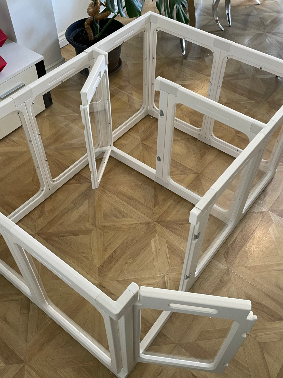 Say goodbye to bulky, ugly pet enclosures! Our clear acrylic playpen is designed for modern pet parents who want both function and style. With transparent walls and a clean minimalist design, it lets your little floof stay safe and visible — without messing up your aesthetic.