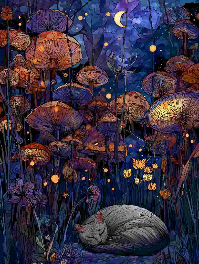 🌲 Cottagecore & cozy vibes (Sleeping Cat, Midnight Garden, Professor Trunk)